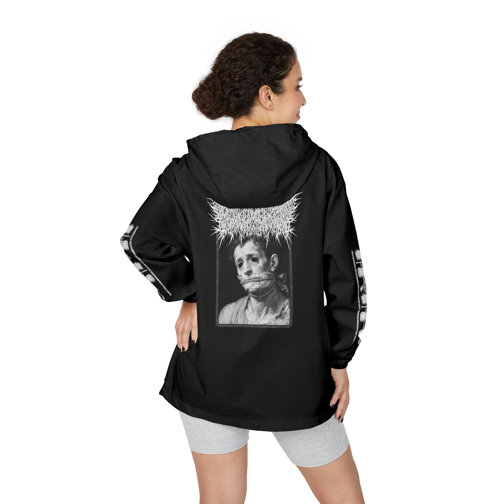 This is the longest band name in extreme metal on a windbreaker made for layering and late nights. Wear it when you want protection from the elements without disappearing in the crowd.